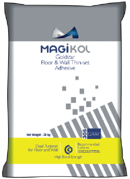 305 GrayMagikol Goldstar 305 Floor and Wall Thin Set adhesive is a bagged cementitious powder to be mixed with water for installing ceramic tile and natural stone using the thin-set method of installation.