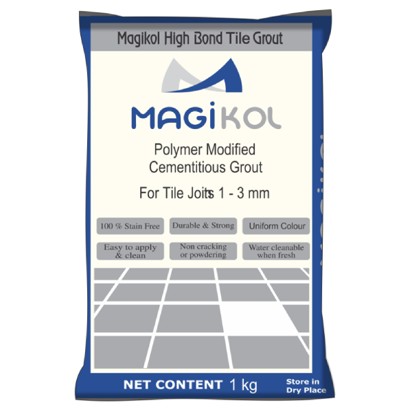 Magikol High Bond Cementitious Grout is a polymer based, Un-sanded cement grout for interior & exterior, floor & wall joint of width of 1mm to 3 mm.