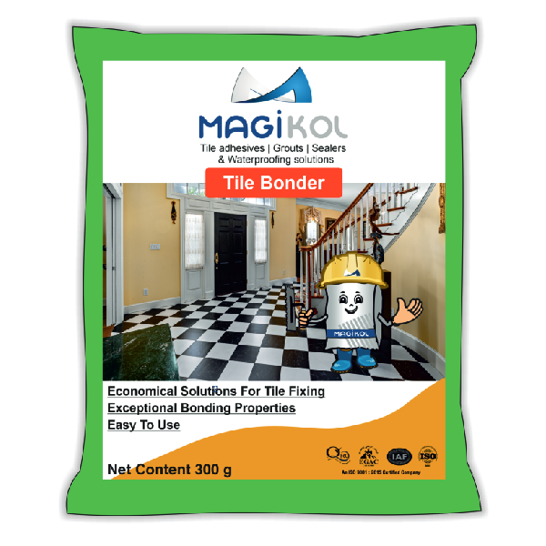 MAGIKOL Tile Bonder (MTB) is a polymer additive which needs to be pre-mix with cement or cement & sand and then should be mixed with water for installing tiles and natural stones using the traditional cement slurry over freshly laid levelling bed or machan.